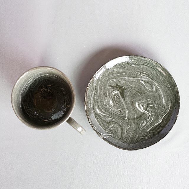 練り込みのカップ&ソーサーです。自然な練り込み模様が美しい一品です。